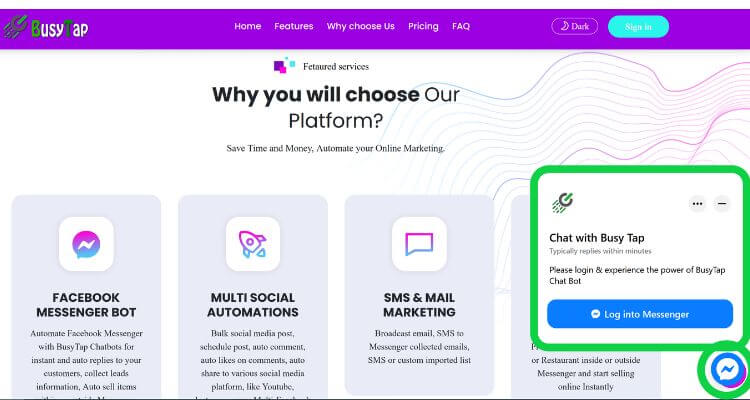 Once you have installed Busytap chatbot on your Facebook page, the messenger chat bubble will allow customers to talk to you on your website with just one click like never before.